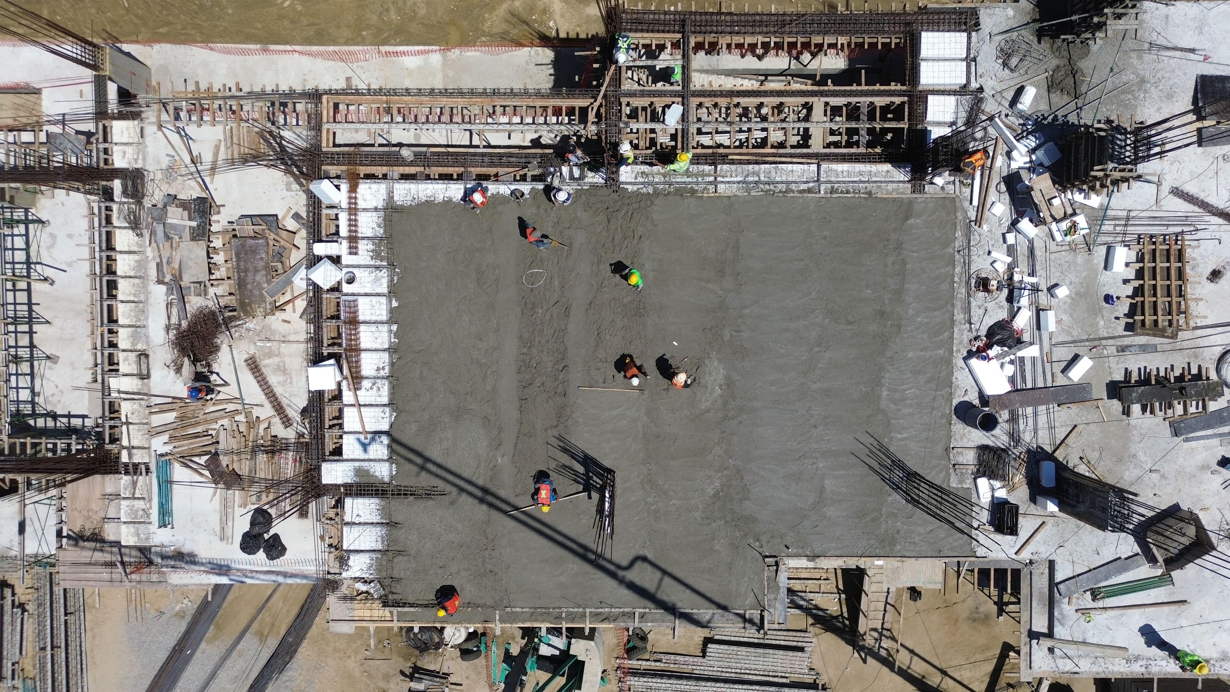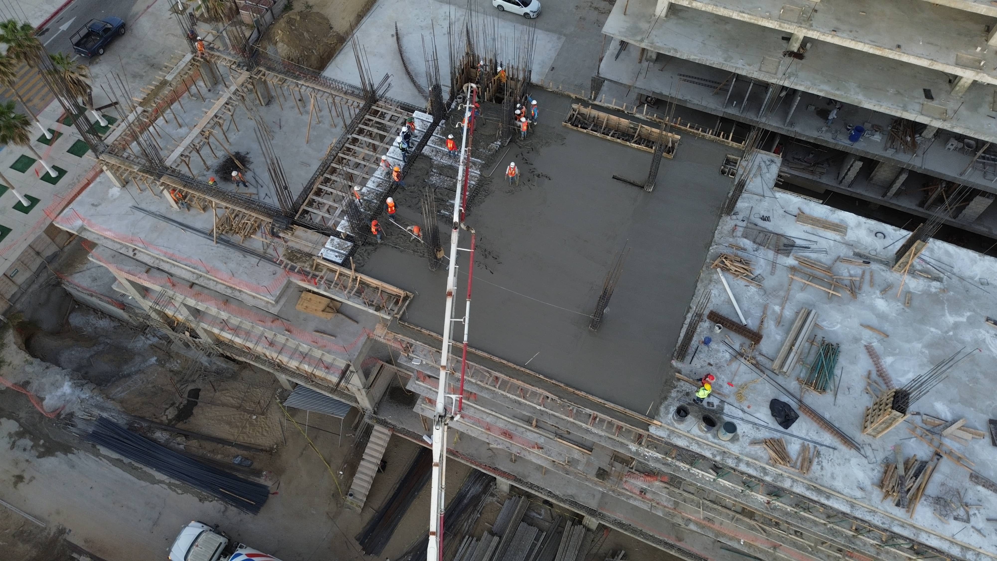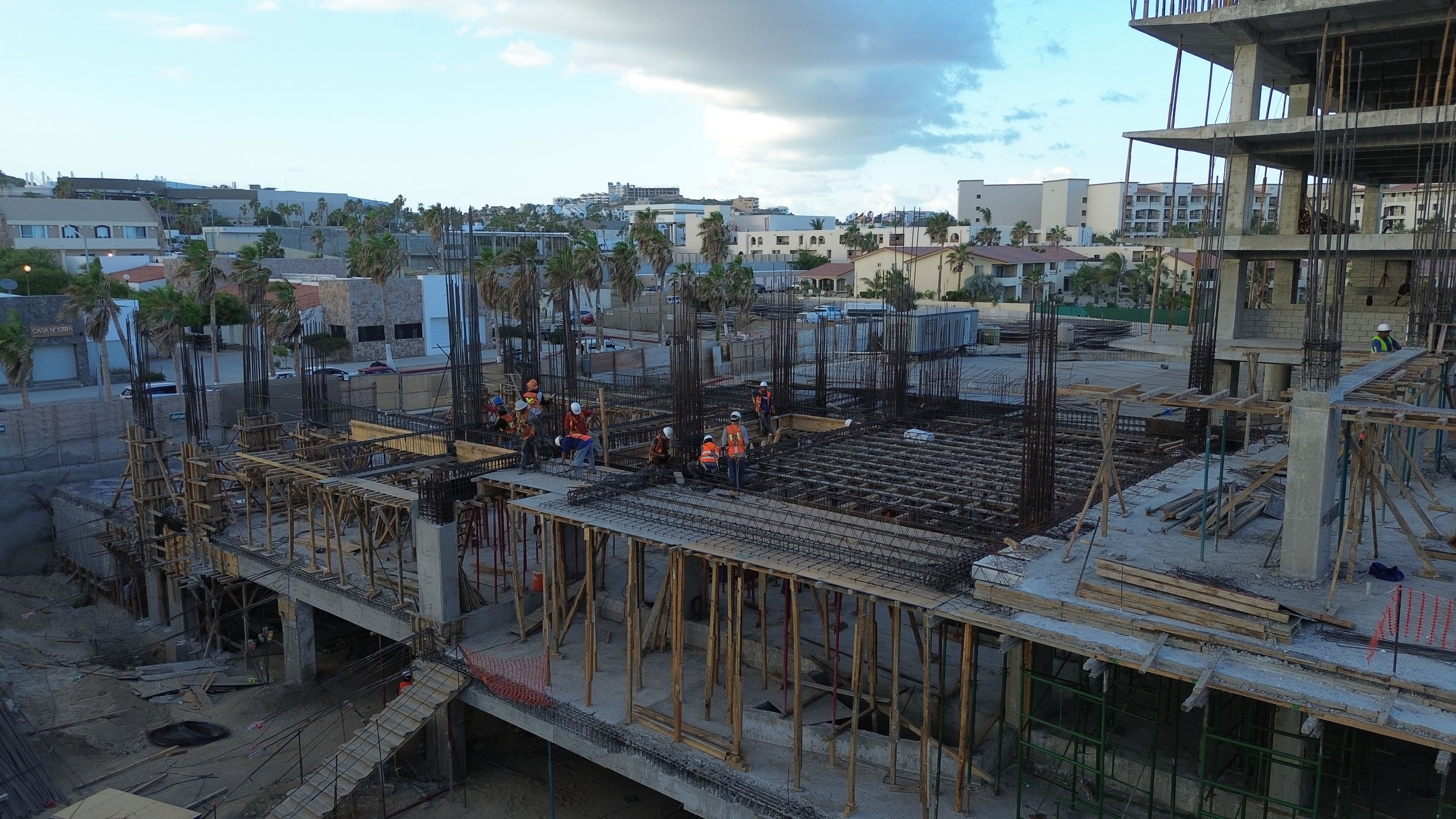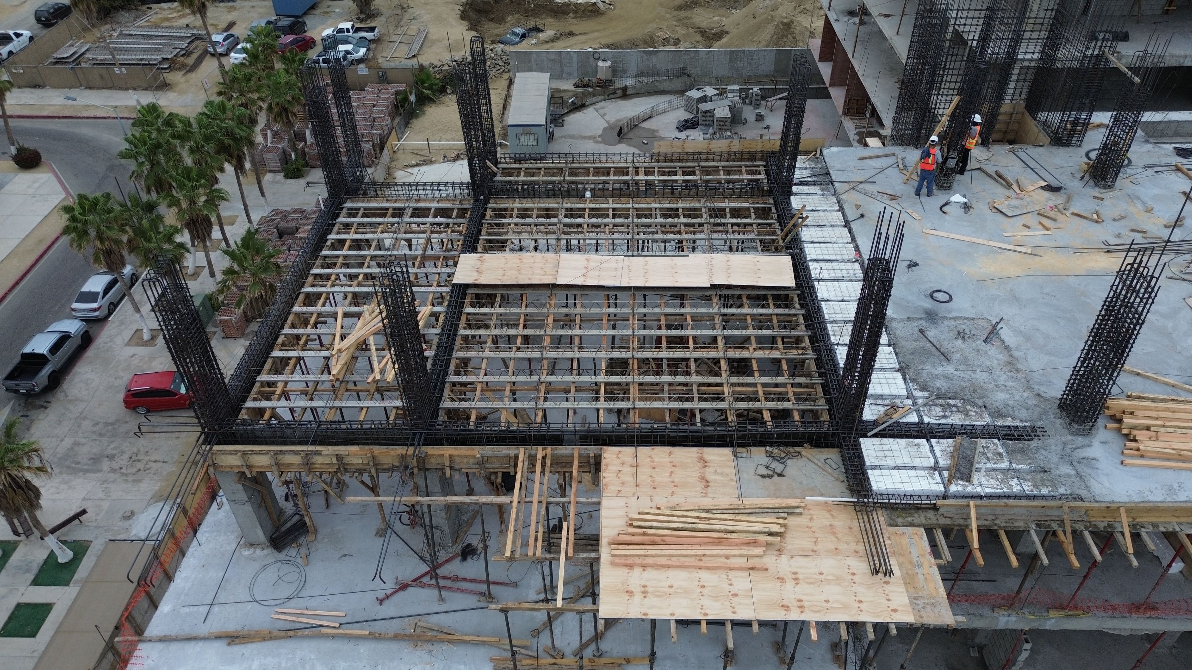 Assembly and cast of fifth level slab