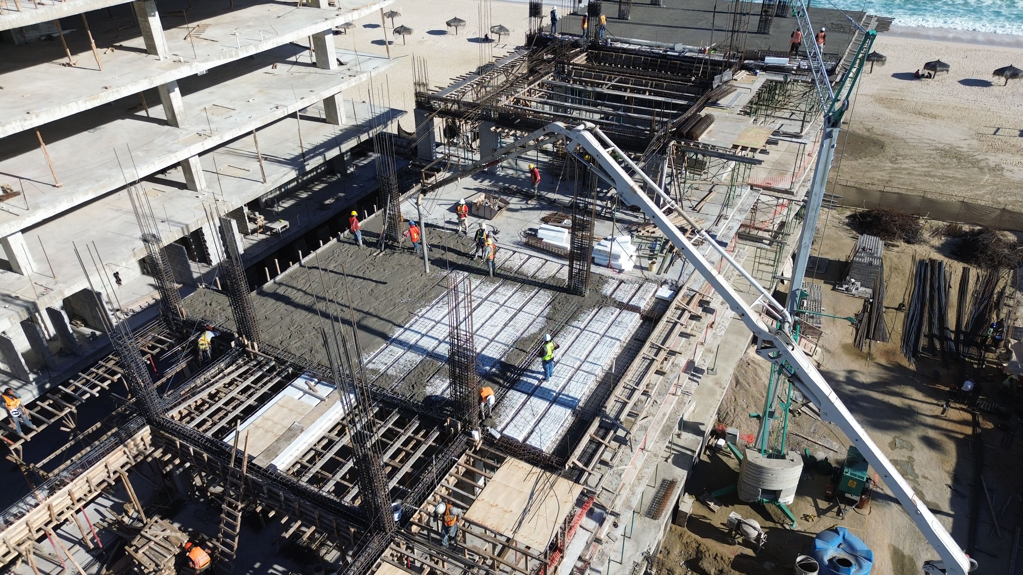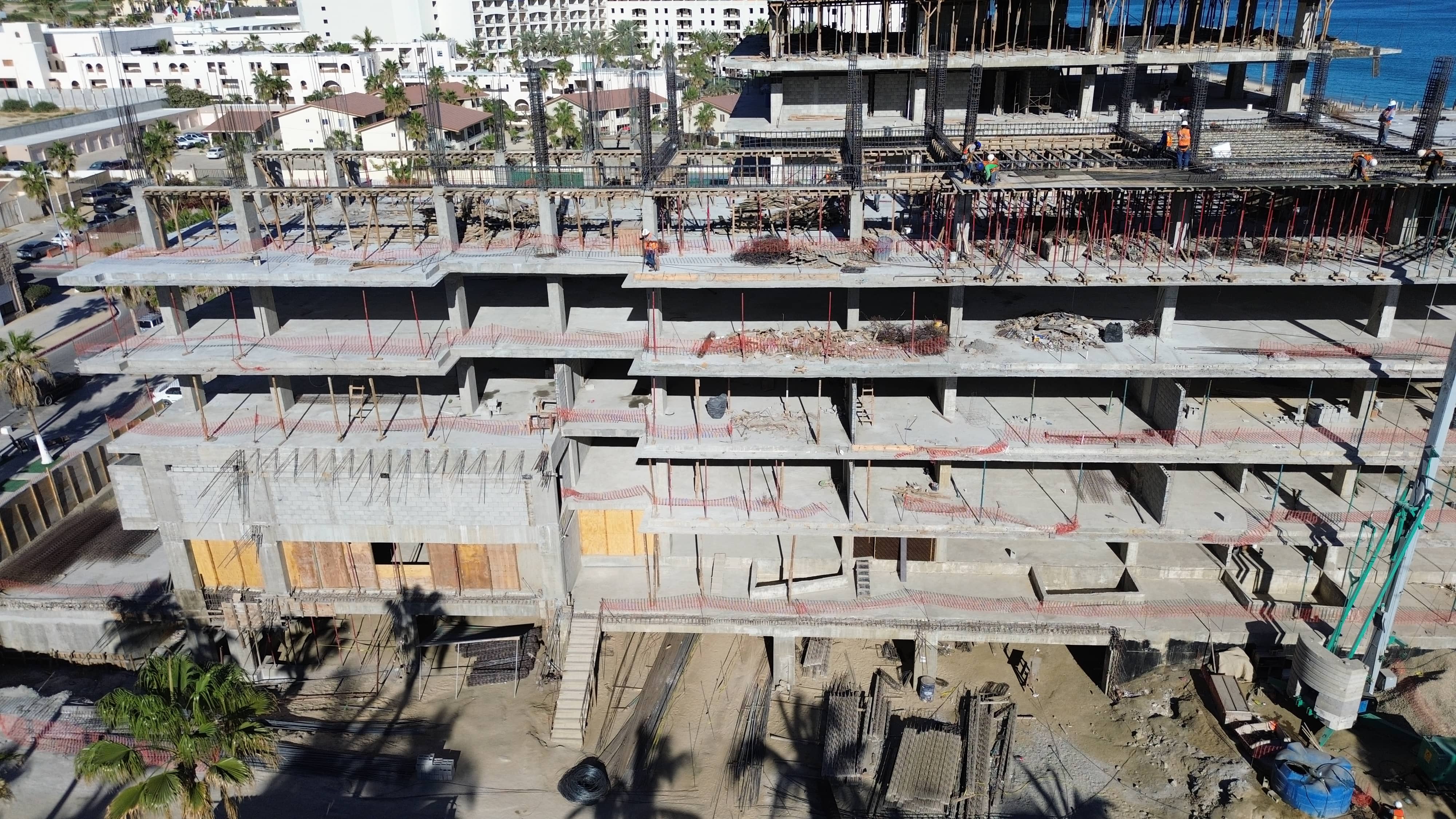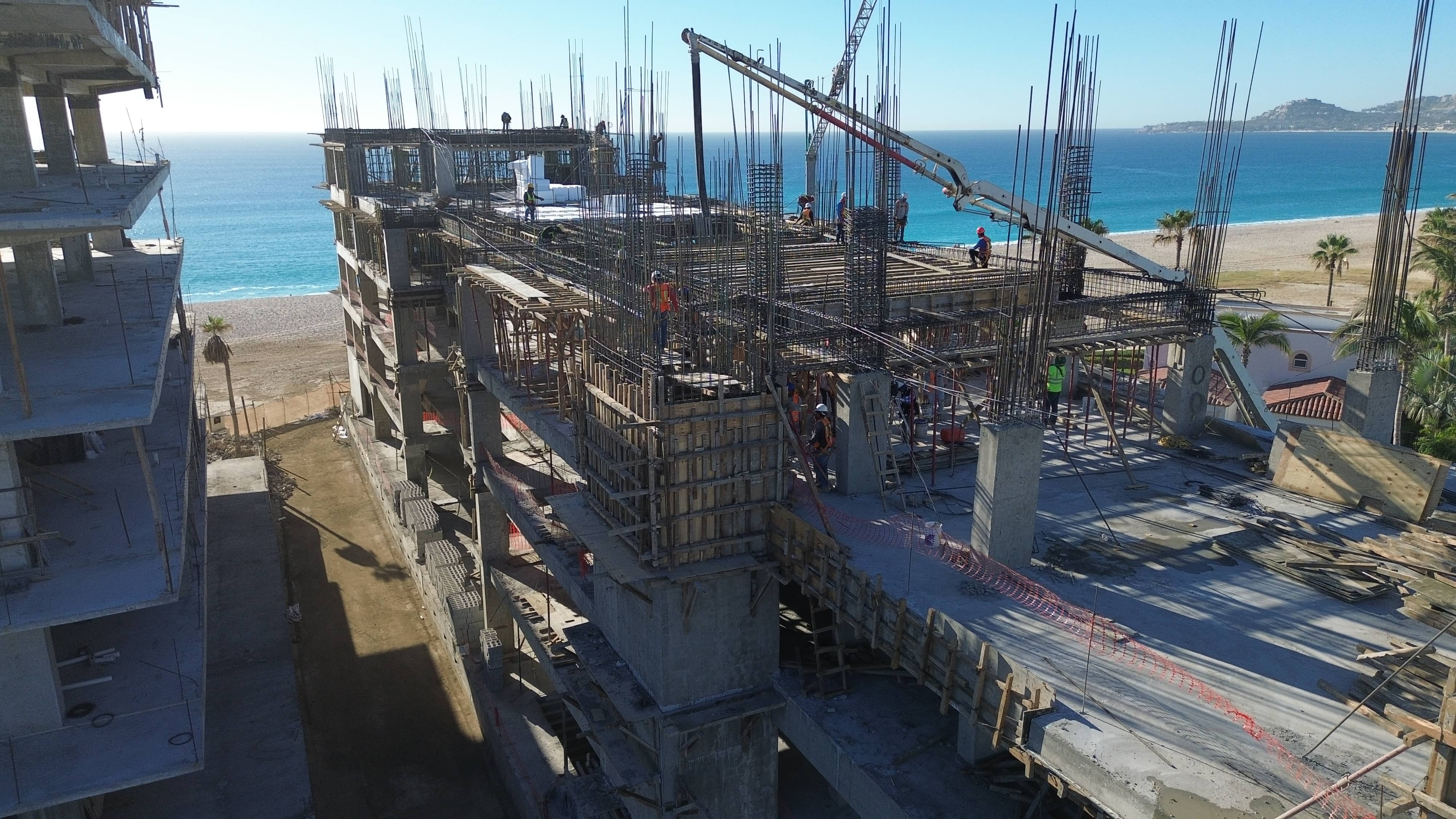 Assembly and cast of fifth level slab