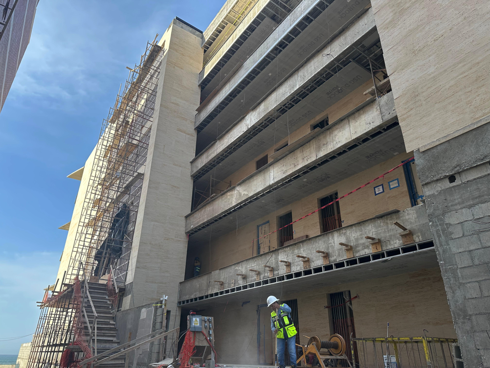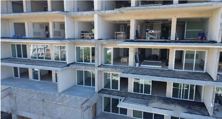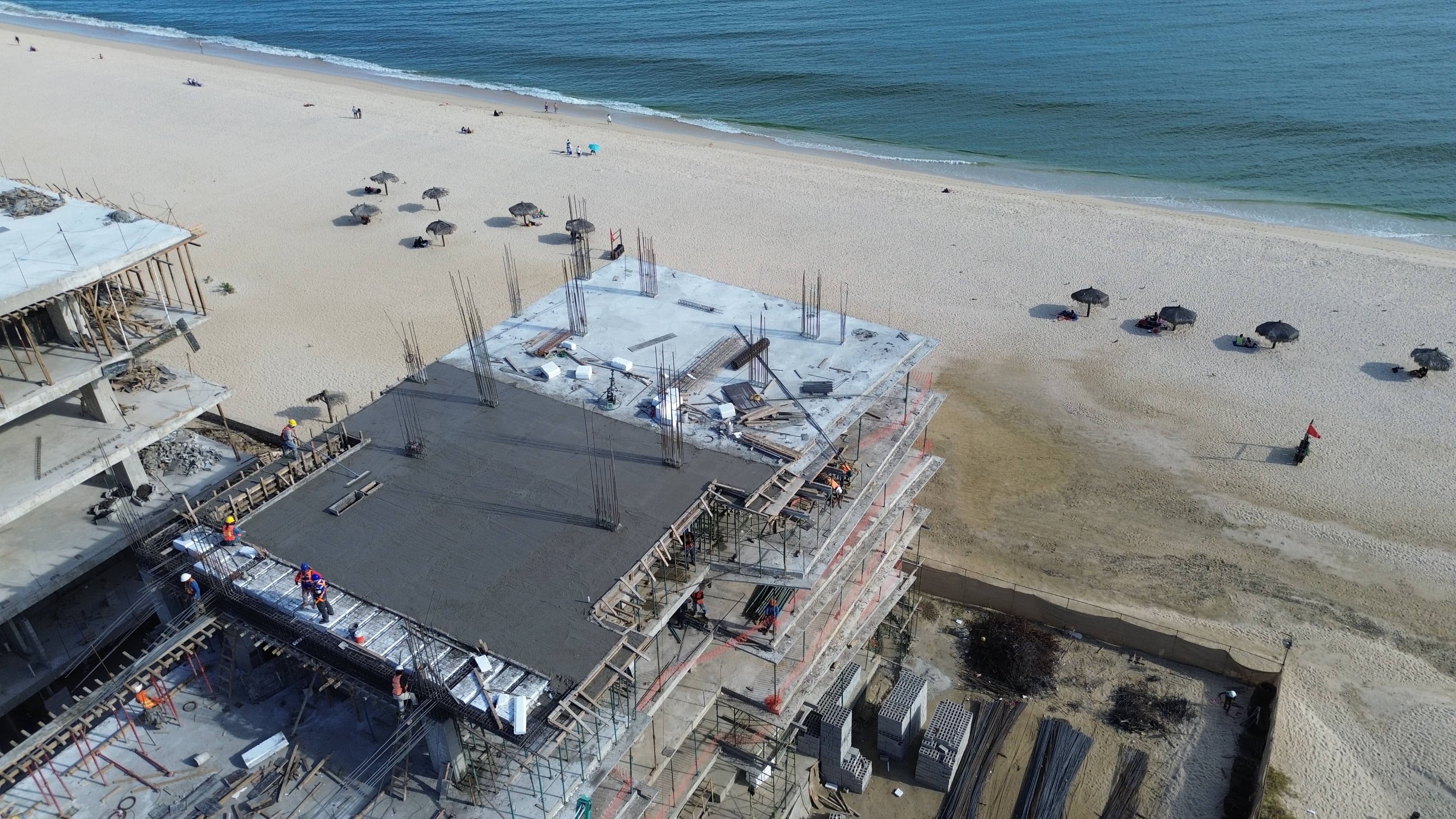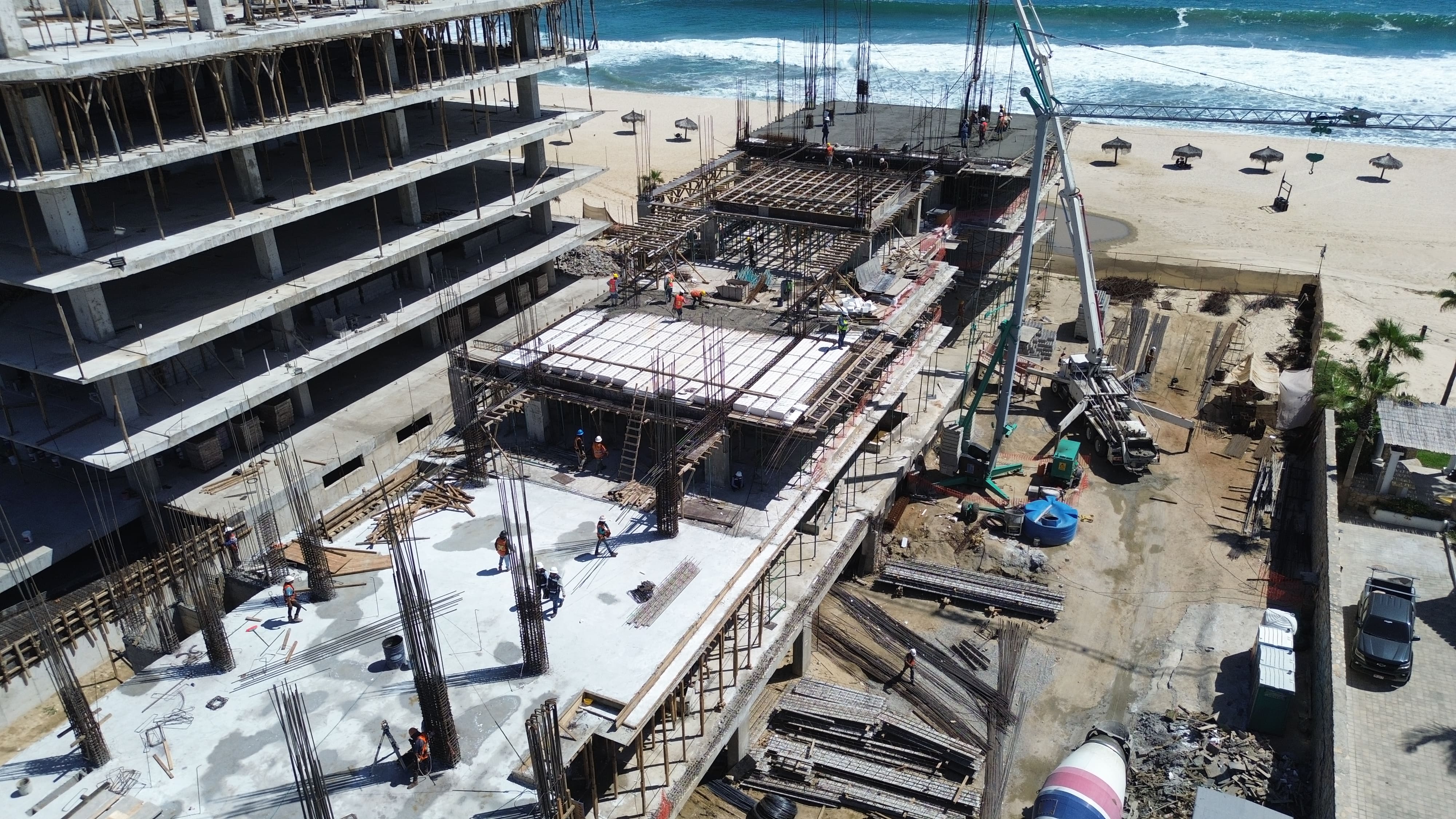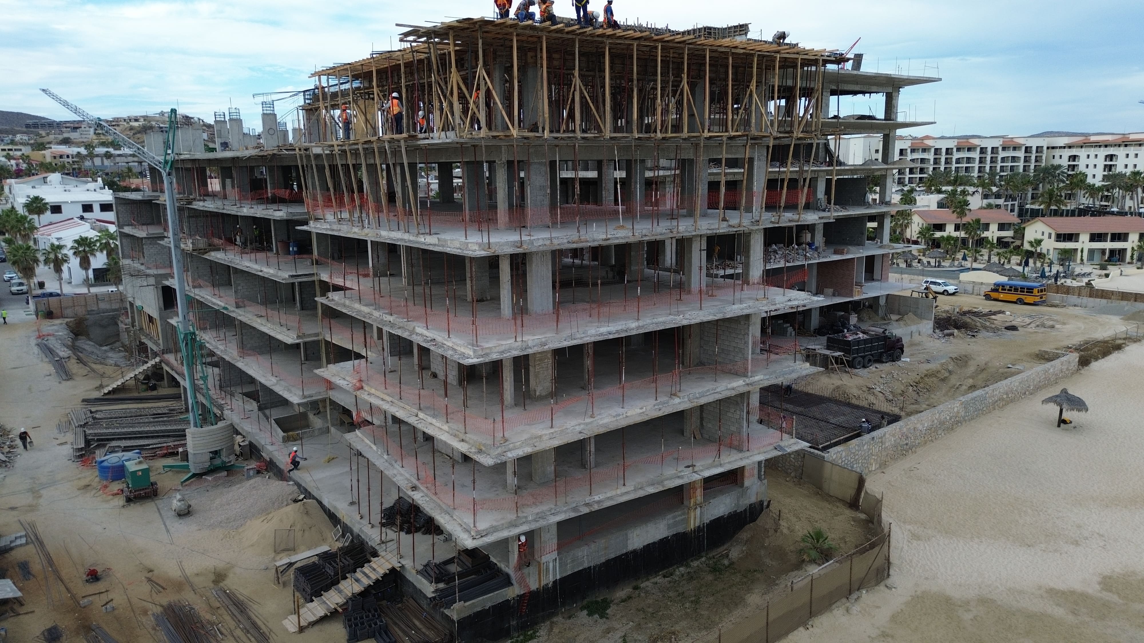 Assembly and cast of fifth level slab