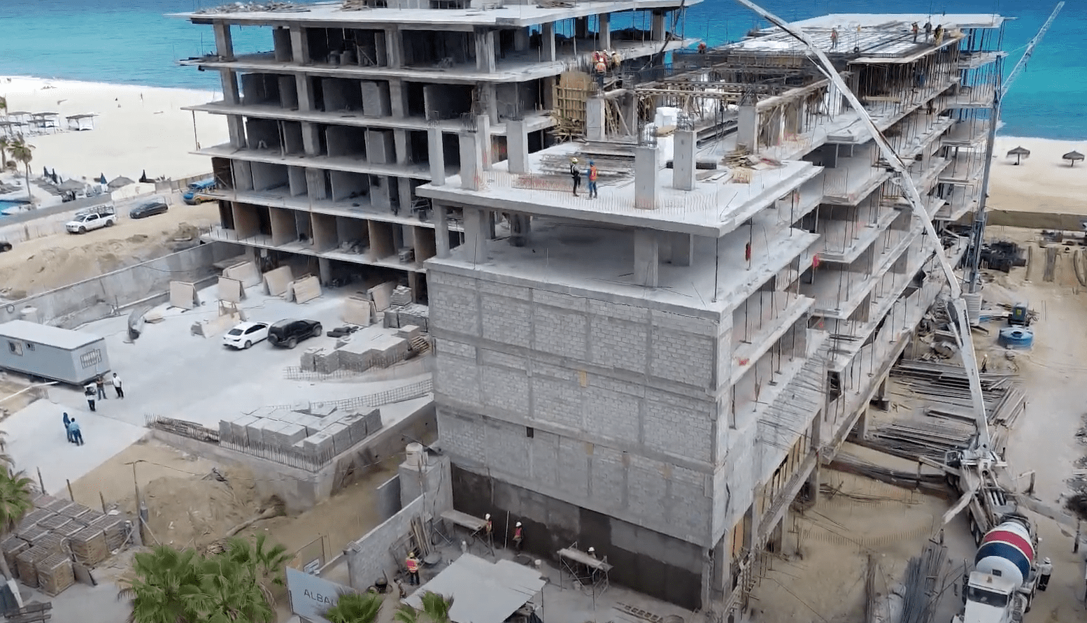 Assembly and cast of sixth level slab